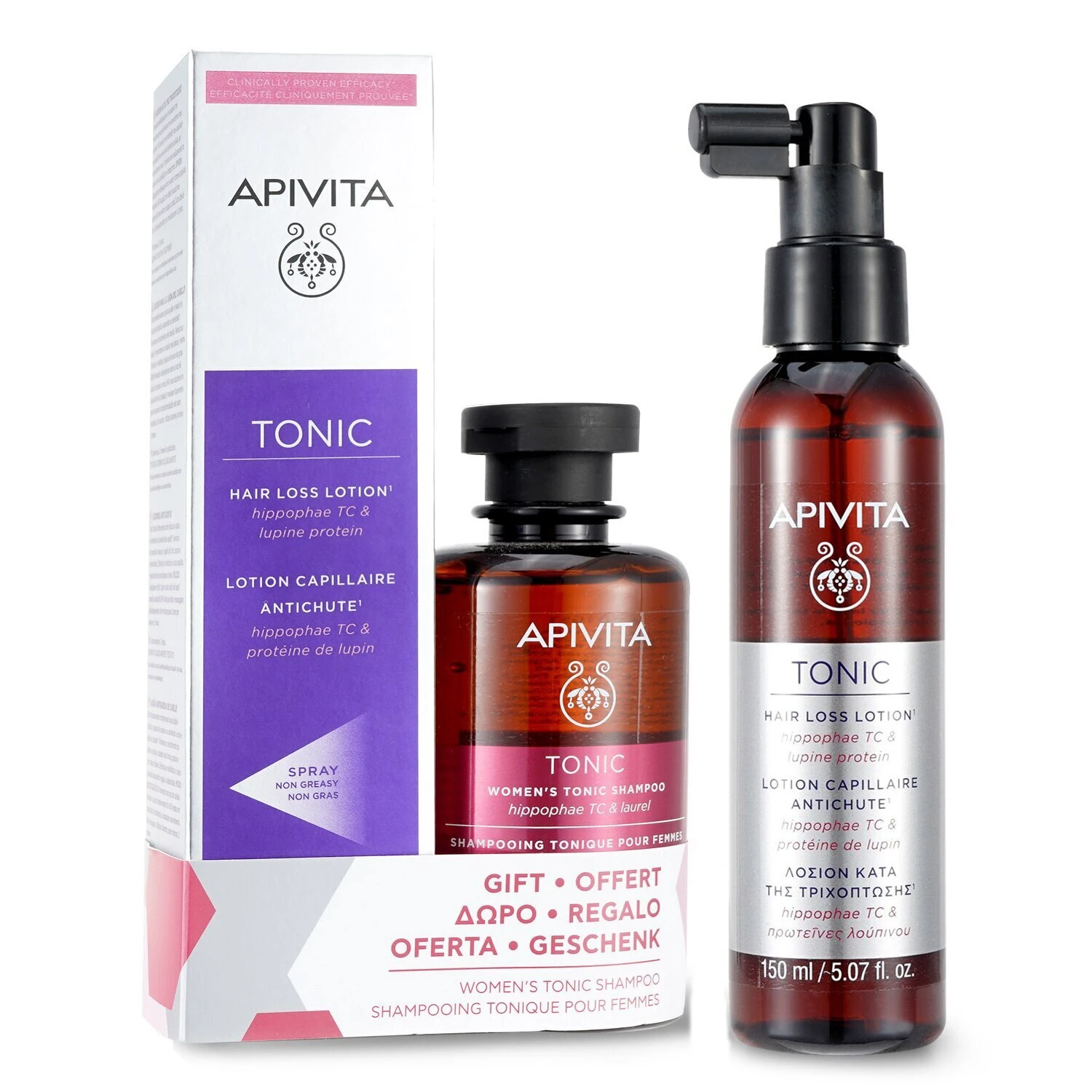 Be the first to review “Apivita Hair Loss Lotion With Hippophae TC & Lupine Protein 150ml (Free: Women’s Tonic Shampoo With Hippophae TC & Laurel – Helps Improve Hair Thickness 250ml) 2pcs” Cancel reply