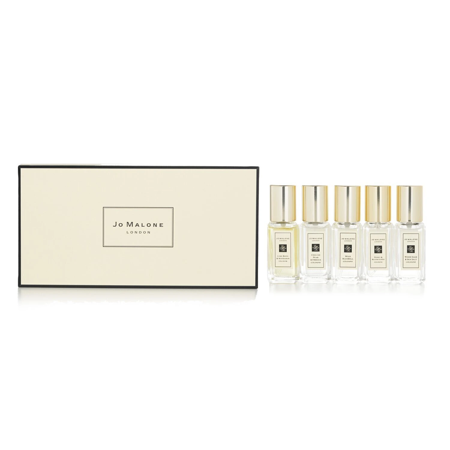 Be the first to review “Jo Malone Cologne Collection: Lime Basil & Mandarin, English Pear & Freesia, Wild Bluebell, Peony & Blush Suede, Wood Sage &Sea Salt 5x9ml” Cancel reply