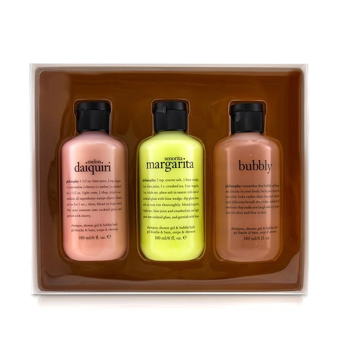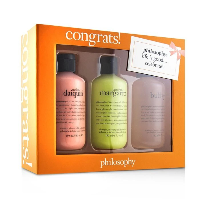 Be the first to review “Philosophy Congrats! 3-Piece Shower Gel Set: 1x Senorita Mrgarita 180ml + Melon Daiquiri 180ml + Bubby 3x180ml” Cancel reply